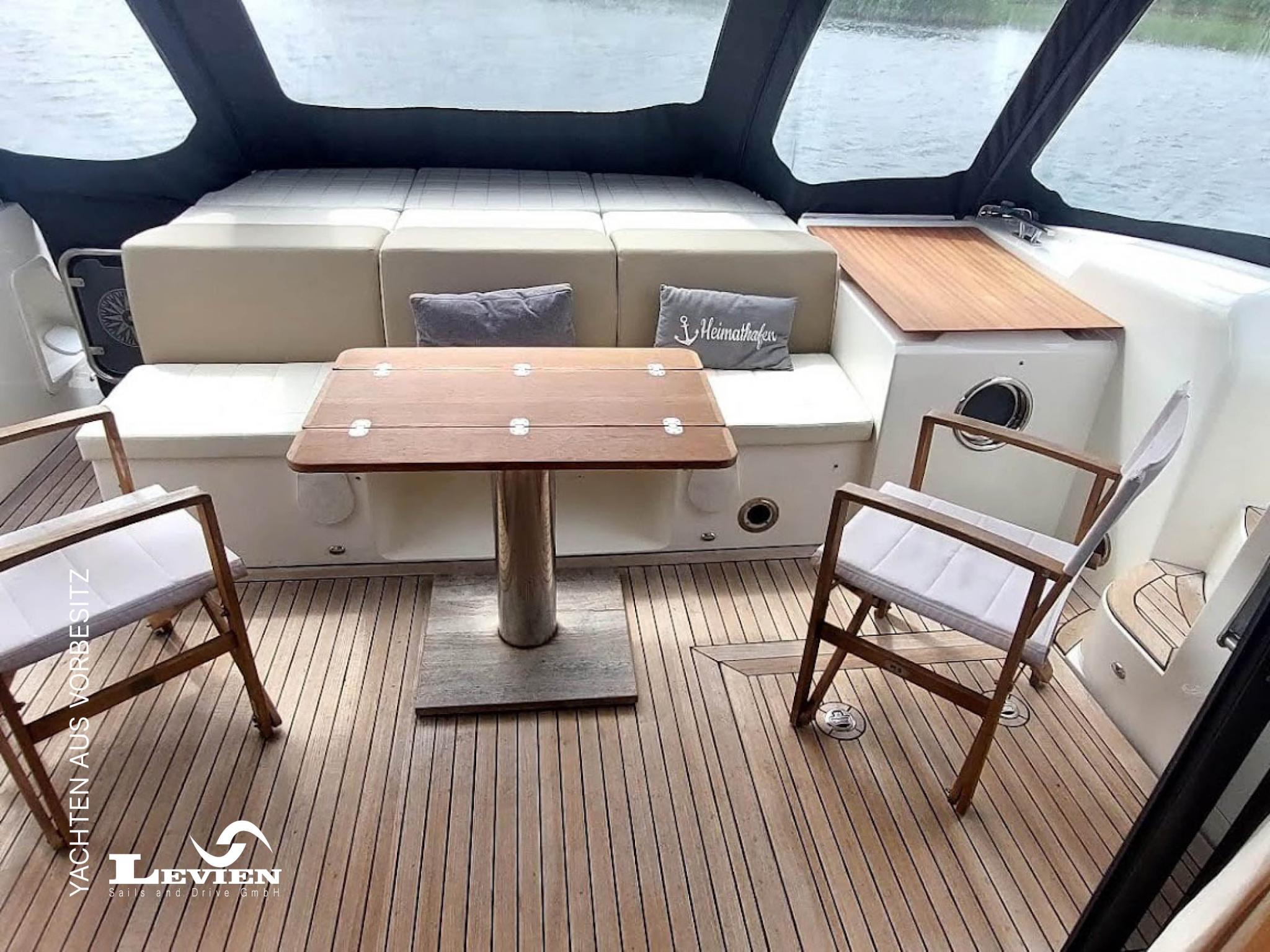Besonderheiten: Klimaanlage für Salon und Eignerkabine, jährliches Hallenwinterlager, Bugsonnenpolster mit aufstellbarer Rückenlehne und Abdeckplane, Relingöffnung Stb und BB zum seitlichen Ausstieg
